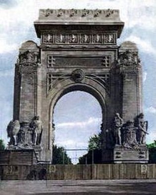 A doua versiune (1922) a monumentului Arcul de Triumf de pe amplasamentul actual, având suprastructura din materiale ușoare (pânză și ipsos).