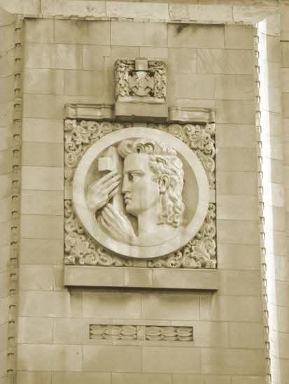 Pe fațada nordică, în medalioane, sunt reprezentate două personaje alegorice, semnificând două virtuți de bază ale unui popor: