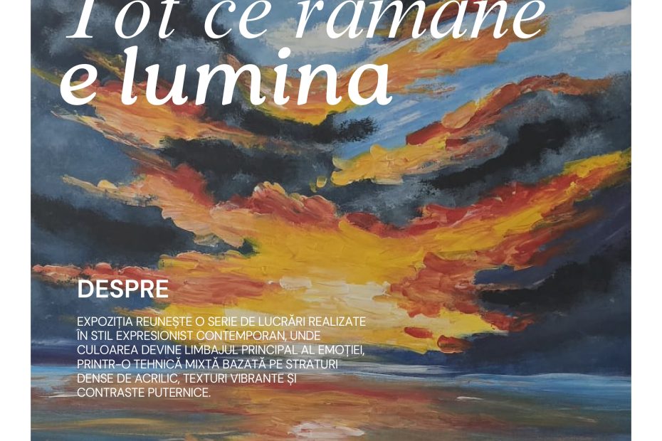 „Mirrors” – expoziția grupului 𝐀𝟐𝟏+ la Galeria Parter Palat În perioada 1–23 noiembrie 2025, Galeria Parter Palat a Centrului de Cultură „Palatele Brâncovenești de la Porțile Bucureștiului” găzduiește expoziția grupului 𝐀𝟐𝟏+, curatoriată de Silvia Stoica și Roxana Barbu. Vernisajul va avea loc sâmbătă, 1 noiembrie 2025, începând cu ora 15:00, iar în deschidere va lua cuvântul Cristian-Robert Velescu, istoric și critic de artă. Expoziția de pictură „Mirrors” a grupului 𝐀𝟐𝟏+ aduce în fața publicului lucrări ce fac parte din proiectele inițiate în perioada de rezidență artistică desfășurată pe domeniul Centrului… Citește mai mult »Comunicat „Mirrors” _𝐀𝟐𝟏+