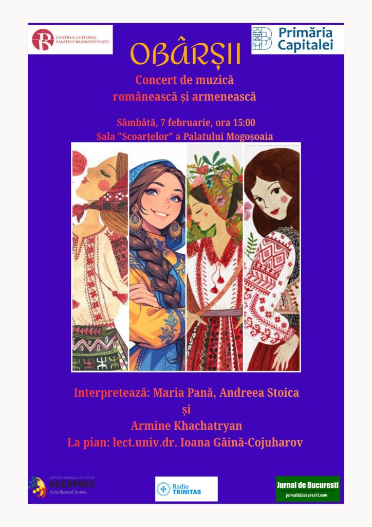 Centrul Cultural „Palatele Brâncovenești de la Porțile Bucureștiului” are plăcerea de a invita publicul la concertul extraordinar „Obârșii”, un eveniment dedicat dialogului dintre tradițiile muzicale românești și armenești. Manifestarea va avea loc sâmbătă, 7 februarie 2026, de la ora 15:00, în eleganta Sală a Scoarțelor.